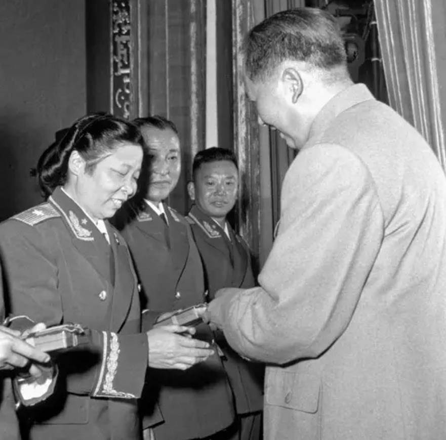 授勋前周总理特意叮嘱摄影师,让他拍下毛主席给李贞授勋的画面,于是就有了下面这张珍贵的图片。