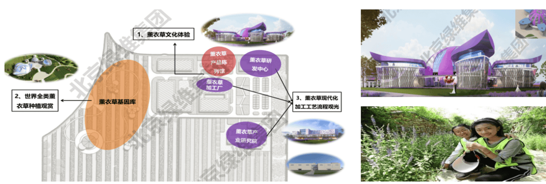 --引流型:打造“紫色花海”(观光)、“香海驿站”(网红打卡),通过薰衣草种植园、四季百花园、热气球飞行基地、薰衣草花田景观道、花田工坊、花海艺术景观小品、雕塑、观光小火车网红景观吸引游客;