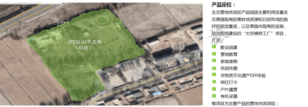 龙景生态果园:打造“营地休闲组团”,加入团建、非遗DIY、户外露营、有机采摘等产品,吸引家庭客群与团建群体;